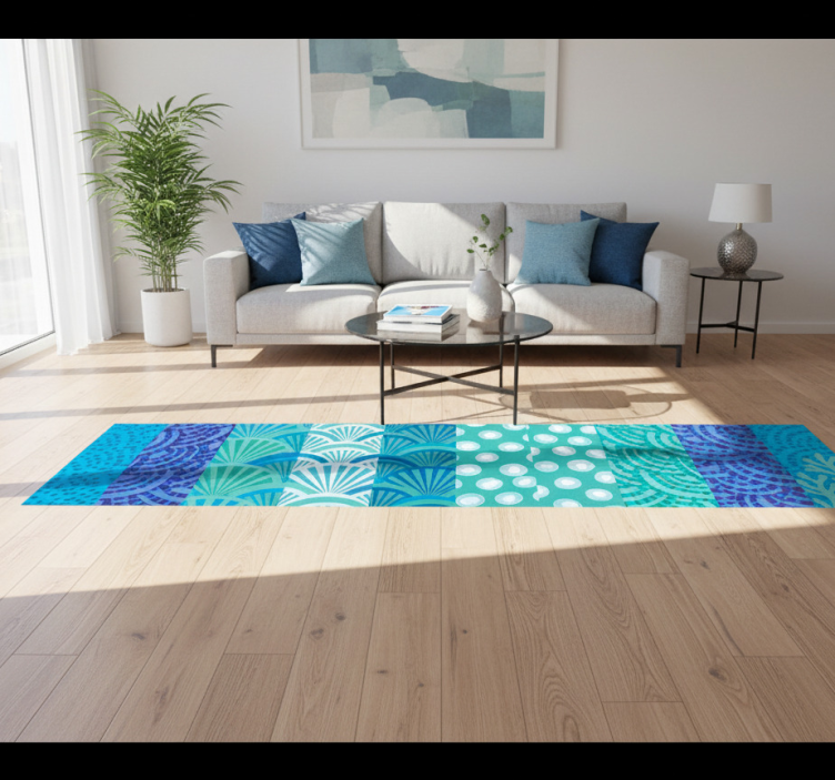 Living room vinyl rug in turquoise ocean design