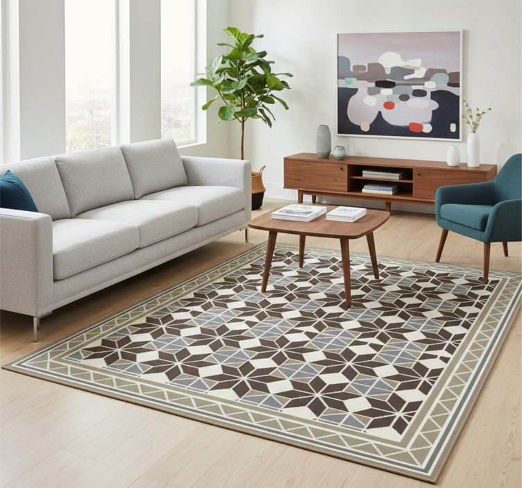 Living room vinyl rug rustic starburst design