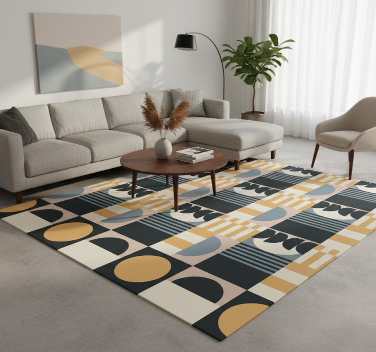 Living room vinyl rug with abstract modern design