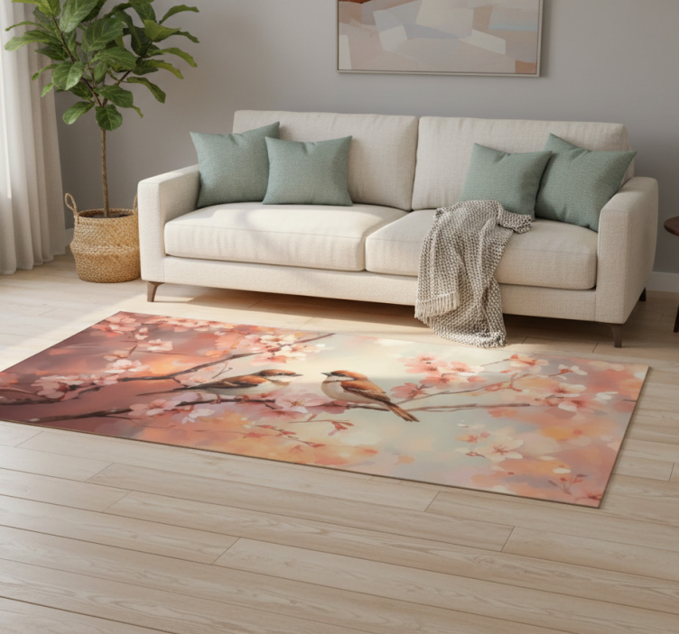 Living room vinyl rug with two birds on a branch