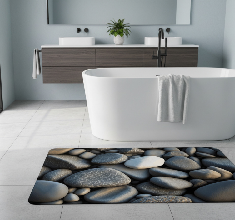 The Ocean stones bathroom vinyl rug is not just a practical addition to your home; it's a statement piece that brings the beauty of nature indoors. Imagine stepping onto a soft, visually striking rug that mimics the soothing textures of ocean stones. This bathroom vinyl rug effortlessly complements your decor and adds a touch of elegance, making your bathroom feel like a luxurious retreat!