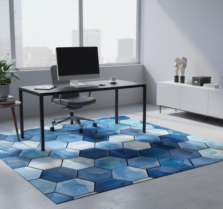 Reference: R24121Transform your workspace with our stunning Office vinyl rug with blue tile design! This beautiful piece features a chic blue tile pattern that effortlessly enhances any office aesthetic. Its vibrant colors and intricate design add a touch of sophistication, creating an inviting atmosphere that inspires creativity and productivity. The Office vinyl rug with blue tile design is not only visually appealing but also practical, boasting features like easy cleaning, anti-slip backing, and scratch resistance.