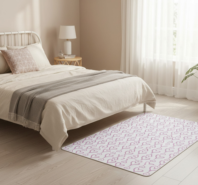 Caring for your Pink illustrated heart icons bedroom vinyl rug is a breeze! Simply wipe it down with a damp cloth or mop for quick clean-ups. This bedroom vinyl rug is designed for easy maintenance, ensuring it stays vibrant and beautiful for years to come.