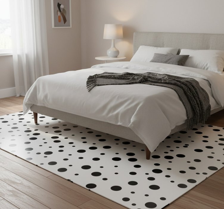 The Polka dot black and white bedroom vinyl rug is more than just a floor covering; it's a stylish statement! This bedroom vinyl rug enhances your room's aesthetics, creating a welcoming and delightful atmosphere. Its unique design invites creativity in your decor, making it an essential addition to your home. With its eye-catching patterns, this rug inspires joy and liveliness, turning any ordinary space into an extraordinary retreat!