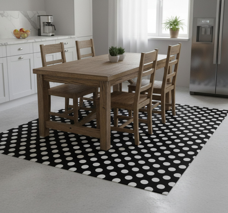 Reference: R23646Introducing the stunning Polka dot kitchen vinyl rug, a delightful addition to your kitchen decor! This fabulous rug features an eye-catching polka dot design that effortlessly combines elegance and playfulness, creating a vibrant atmosphere in any kitchen space. Its unique style not only enhances your interior but also offers practical benefits such as being easy to clean, anti-slip, and scratch resistant, ensuring that it remains a long-lasting staple in your home.