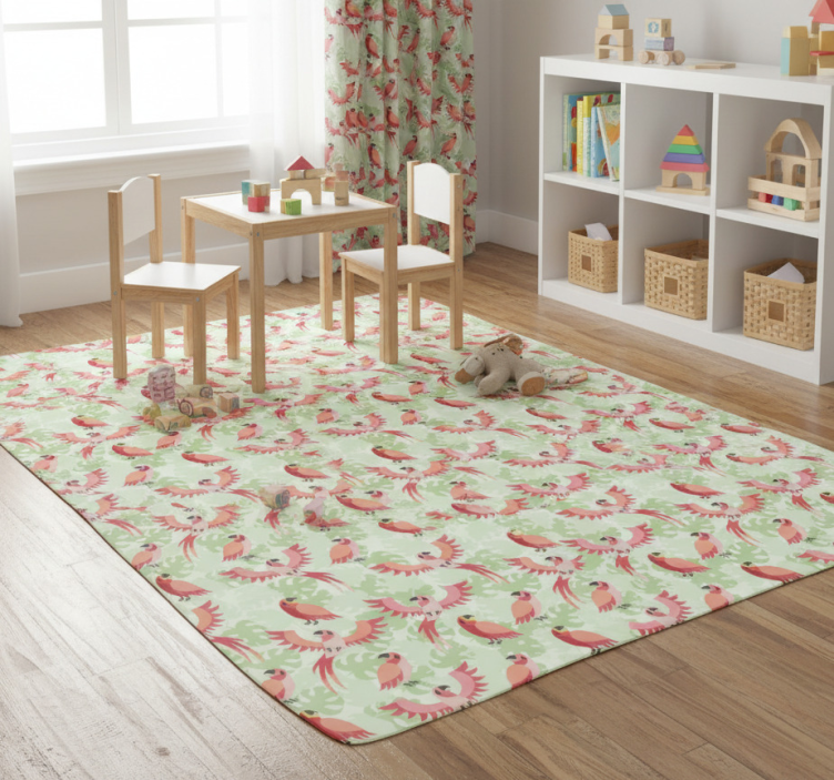 The Red birds on green leaves animal vinyl rug is more than just a floor covering; it’s a statement piece that enhances your interior design. Imagine walking into a room adorned with this beautiful rug, where the lively colors spark joy and inspiration. It’s perfect for living rooms, bedrooms, or playrooms, creating a warm and inviting atmosphere that everyone will love!
