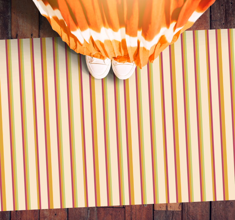 Introducing the Stripes vinyl rug multi-striped elegance, a breathtaking addition to any space! This stunning piece features a captivating design with vertical lines and a harmonious blend of colors including yellow, red, green, and beige. The beautiful stripes pattern brings a sense of vibrancy and sophistication, transforming your room into a haven of style.