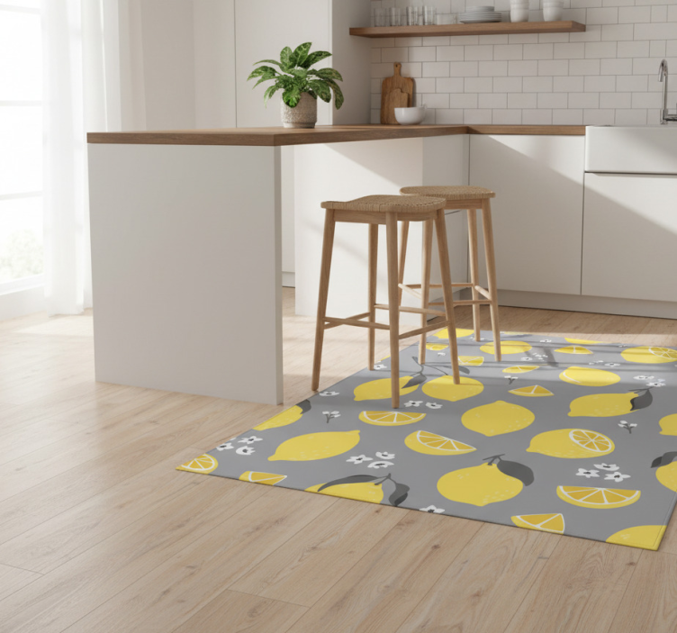 The Tropical lemon kitchen vinyl rug is the perfect decorative addition to any kitchen! Imagine stepping onto a soft, inviting surface that brightens your day and inspires culinary creativity. Its vivid colors and playful design can effortlessly enhance your home decor, making your kitchen feel warm and welcoming. This kitchen vinyl rug is more than just a floor covering; it's a delightful statement piece that brings joy to your daily routine!