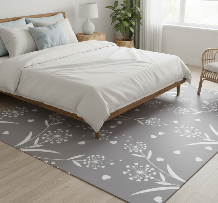 Reference: R20666Transform your space with the stunning White dandelions flower vinyl rug, a beautifully designed piece that brings nature indoors. With its vibrant yet soothing white dandelion pattern, this rug effortlessly enhances your décor while providing a warm and inviting atmosphere. Perfect for any room, its unique design combines elegance and functionality, making it a must-have for your home!