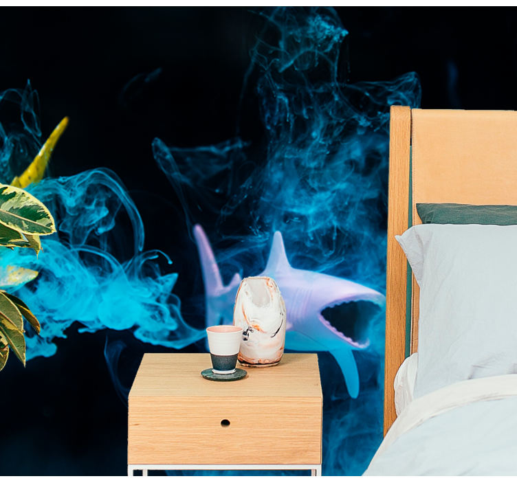 Transform your space with our stunning Animal wall mural colorful shark illustration! This vibrant design features a breathtaking shark swimming through shimmering waters, surrounded by mesmerizing smoke, bringing the essence of the ocean and its rich sea life right into your home. The photomontage captures the beauty of underwater marine life, creating a dynamic atmosphere that invigorates any room with a splash of color and excitement!