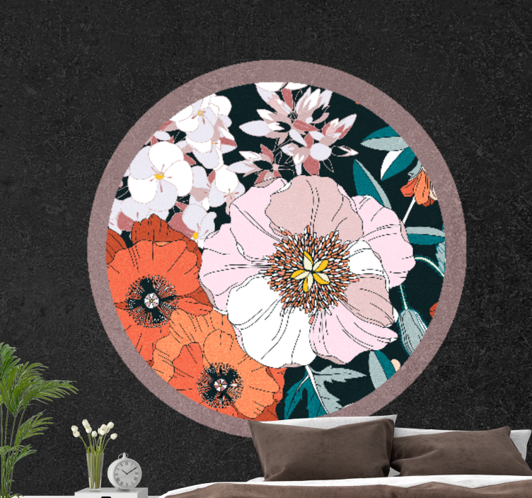 Introducing our stunning Flower mural floral circle design, a beautifully crafted illustration that captures the essence of nature with hand-drawn flowers and poppies arranged in an enchanting circle. This design brings a refreshing burst of creativity to your space, inviting the beauty of the outdoors into your home with its vibrant and serene aesthetic!