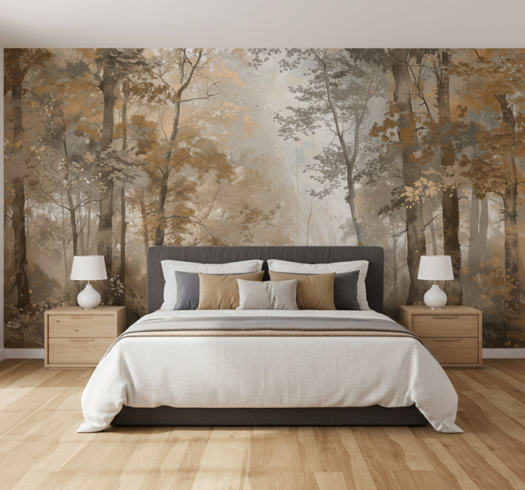 Forest wall mural amber autumn grove