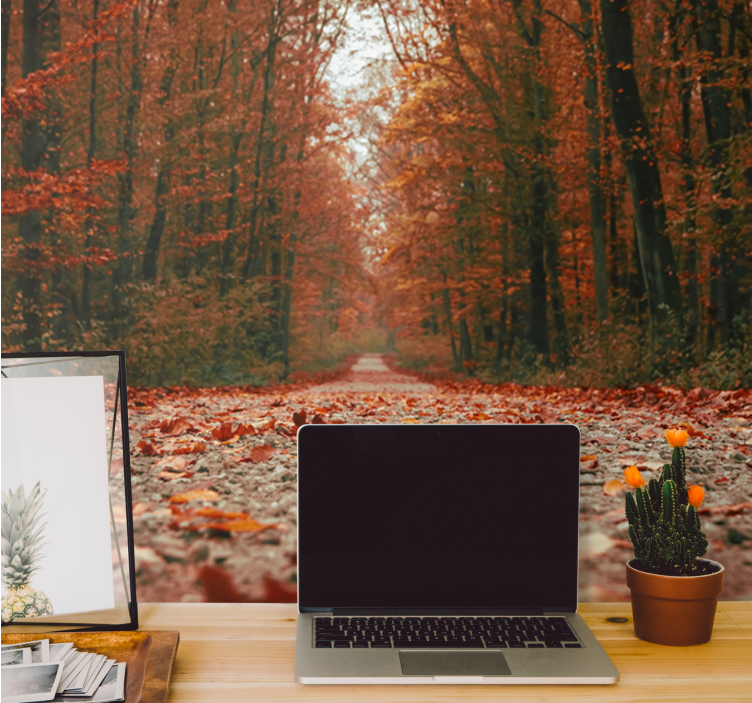 Transform your space with the breathtaking Forest wall mural autumn pathway trail. This stunning design captures the essence of a serene autumnal forest, complete with a winding path enveloped by vibrant fall leaves. The captivating depth of the scene invites you to immerse yourself in nature, bringing a sense of tranquility and warmth to your home.