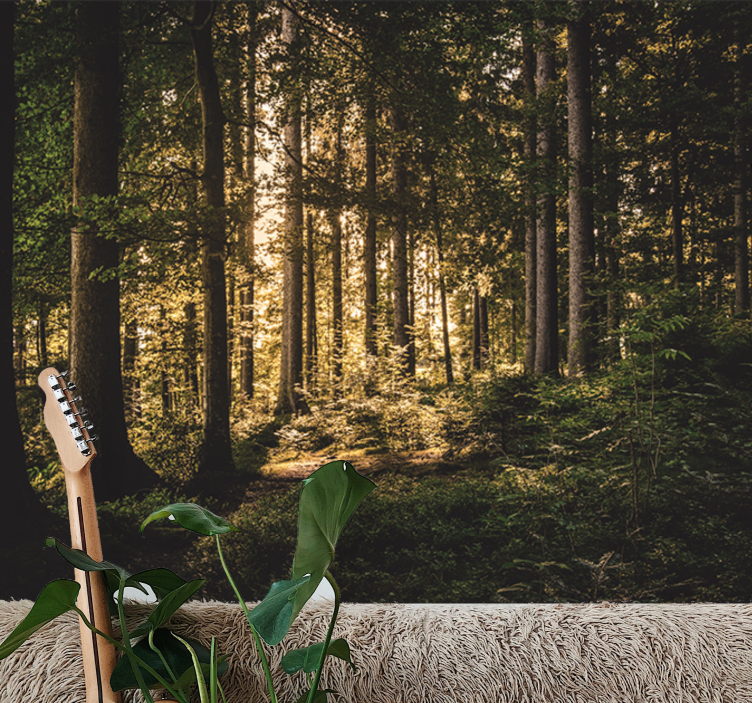 Transform your space with our stunning Forest wall mural bright forest path, a breathtaking depiction of a serene woodland landscape. This design captures the essence of nature with its vibrant trees, lush rainforest elements, and soft sunlight filtering through the leaves. The rich hues evoke a feeling of tranquility and connection to the great outdoors, making it a perfect addition to any room!