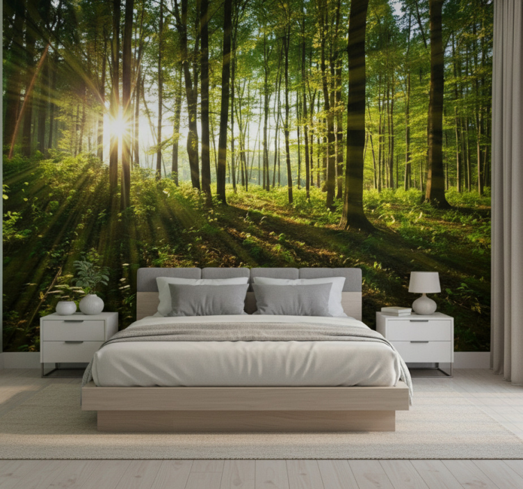 Applying the Forest wall mural golden sunburst woods forest wall mural is a breeze! All you need is some adhesive, a roller, a brush, and a cutter. Simply apply the glue to the wall or the back of the mural, and carefully position it for a flawless finish. For easy maintenance, just clean it with a damp cloth and a bit of neutral soap. Enjoy your beautiful new space!