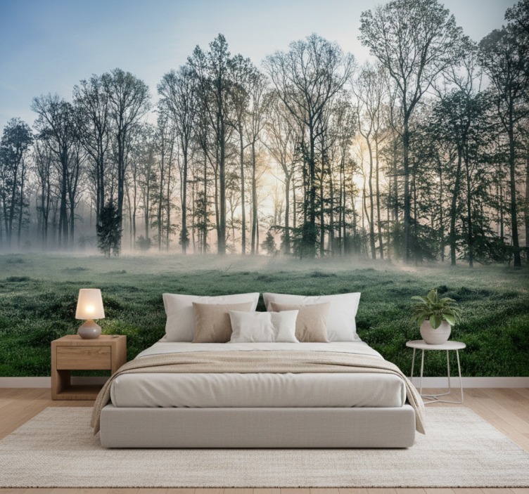 Forest wall mural misty morning meadow