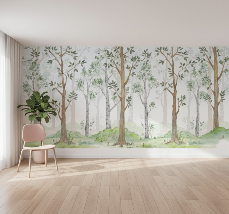 Forest wall mural pastel woodland breeze