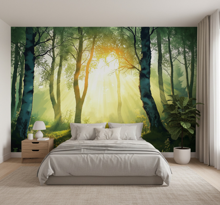 The Forest wall mural sunlit birch design forest wall mural is perfect for those looking to infuse their spaces with tranquility and beauty. Imagine stepping into a room that feels like a peaceful retreat, where nature's calming presence surrounds you! This mural not only enhances your decor but also inspires relaxation and creativity. Its elegant design brings the serenity of the outdoors inside, making it an ideal choice for living rooms, bedrooms, or creative spaces!