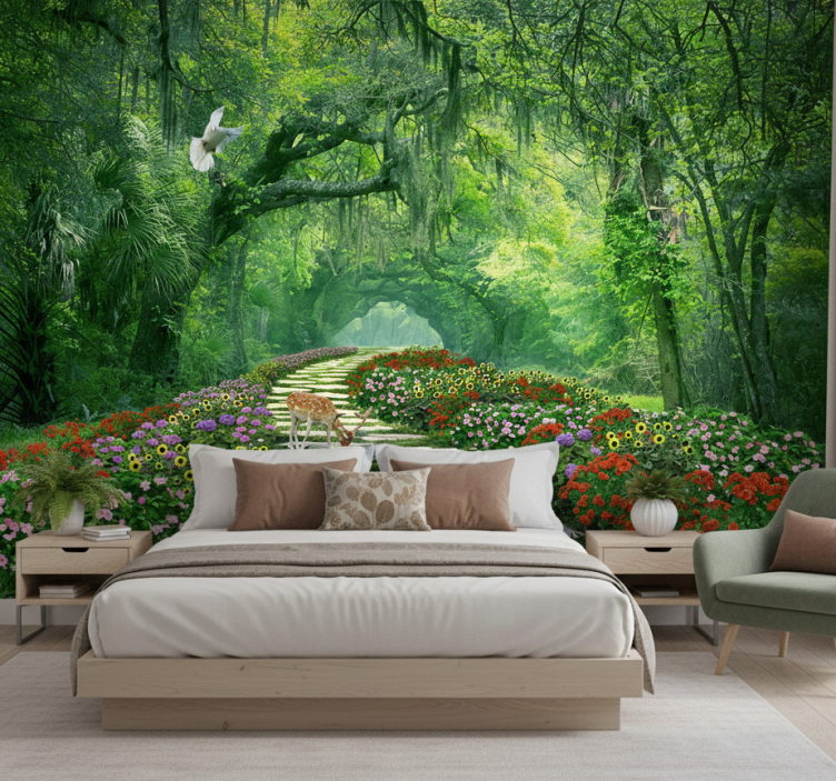 The Forest wall mural surreal woodland path forest wall mural is an ideal choice for decoration as it effortlessly enhances the aesthetic of your home or office. Imagine stepping into a peaceful woodland every time you enter your space! This mural captures the essence of nature, inspiring creativity and relaxation. It serves as a perfect backdrop for any room, making it a versatile addition to your décor.