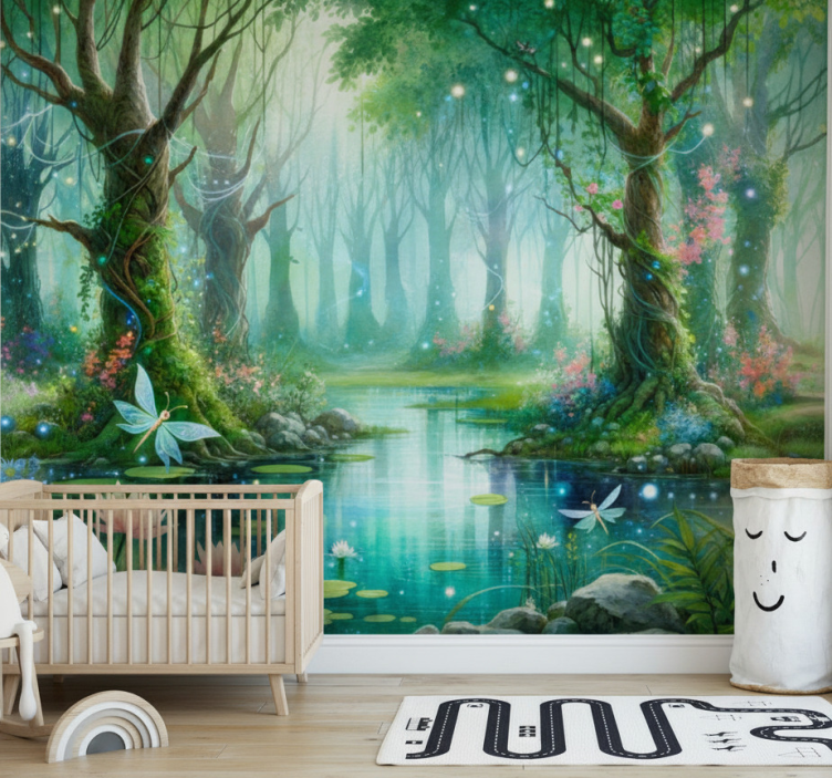 Forest wall mural whimsical fairy design