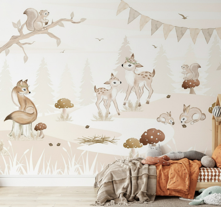 The Forest wall mural whimsical woodland nursery forest wall mural is more than just a decorative piece; it is an invitation to adventure! Imagine your little one waking up surrounded by the gentle charm of woodland friends and nature's beauty. This mural creates a peaceful sanctuary that inspires dreams and storytelling, making it an ideal choice for any nursery or playroom.