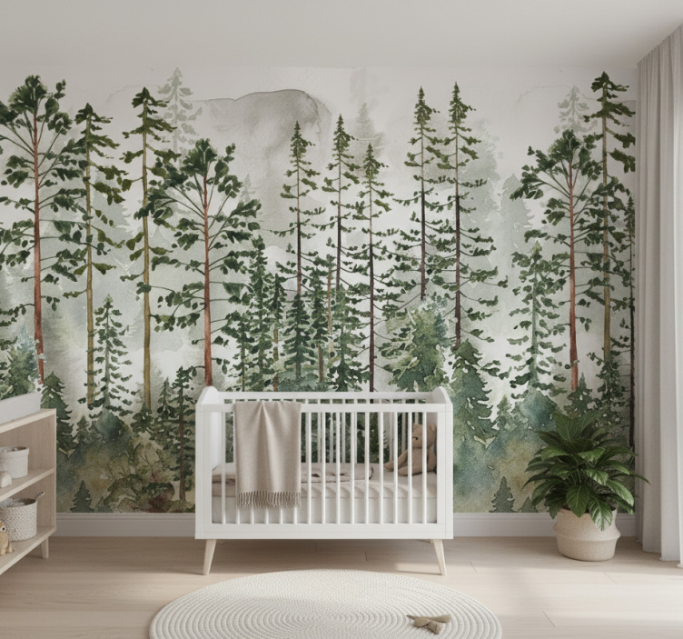 Forest wall mural woodland nursery decor