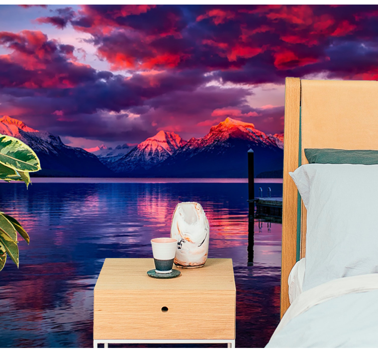 Transform your space with the breathtaking Landscape mural wallpaper majestic mountain echoes. This stunning design showcases majestic mountains rising above a serene river, bathed in the warm glow of a sunrise. The captivating sky, adorned with clouds, complements the lush landscape that features a tranquil lake, a picturesque sunset reflecting on the water, and a charming dock inviting you to immerse yourself in nature’s beauty!