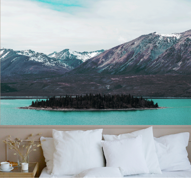 Transform your space with our stunning Landscape mural wallpaper mountain lake island. This exquisite design captures the serene beauty of nature, featuring a breathtaking island surrounded by majestic mountains and a tranquil lake. The photographic quality of the mural brings life to your walls, immersing you in a picturesque landscape that resonates with peace and harmony.