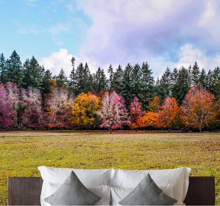 Transform your space with our Nature wall mural colorful autumn forest, a breathtaking design that captures the essence of a vibrant autumn landscape. Featuring stunning trees and a lush forest, this mural brings the beauty of nature right into your home. The graphic design showcases a picturesque field filled with colorful foliage, creating a serene atmosphere that invites warmth and tranquility.