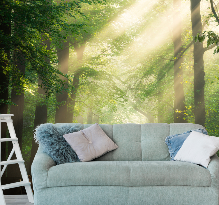 Applying the Nature wall mural sunlight through forest trees nature wall mural is easy and straightforward! Simply use glue on the wall or the product itself, along with a roller, brush, and cutter for a flawless finish. Enjoy the transformation of your space in no time!