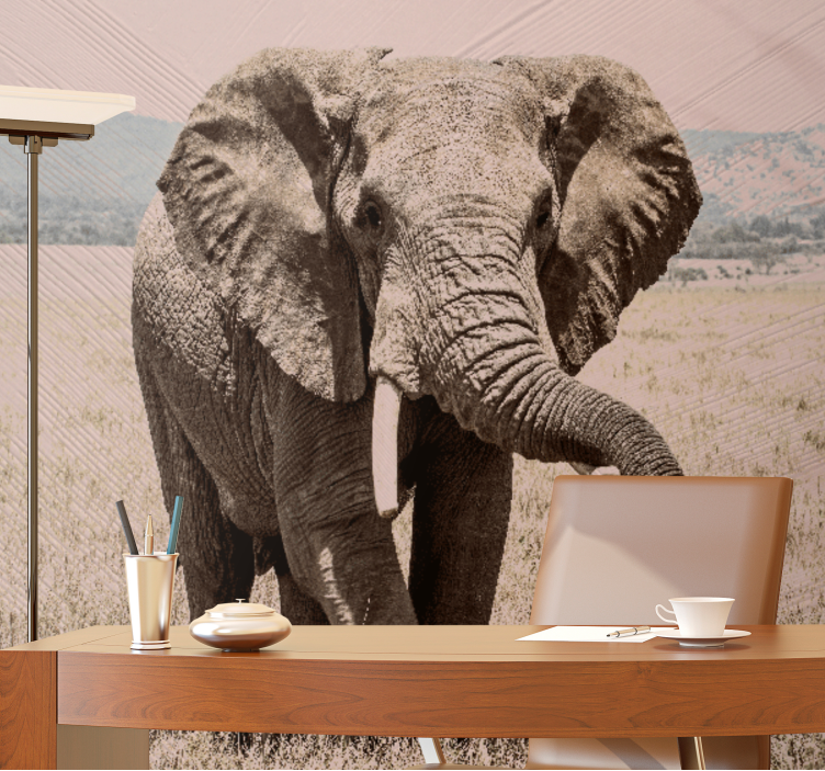 Transform your living space with the stunning Regal elephant aura wall mural. This exquisite design showcases a majestic elephant gracefully set against a backdrop of vibrant African wildlife, bringing a touch of nature into your home. The intricate details of this wild animal mural capture the essence of the wilderness, creating an effect that resonates with the beauty of wildlife and the serenity of nature.