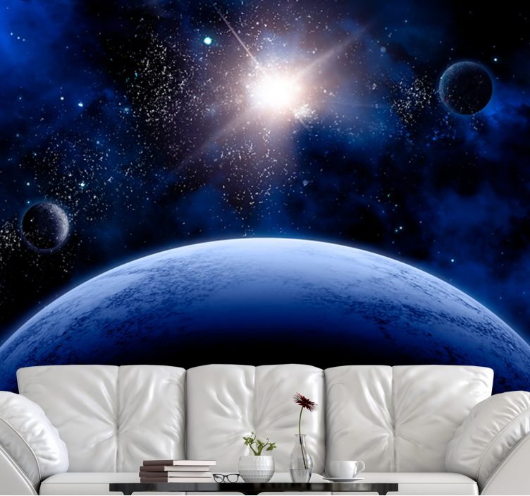 Transform your space with the breathtaking Space mural celestial orbital viewpoint. This stunning design features a mesmerizing blend of planets, a radiant sunburst, twinkling stars, and the vastness of the galaxy, all harmoniously coming together to create a captivating cosmic panorama. The sunlight dances across the mural, evoking a sense of wonder and adventure, making it perfect for any room in your home!