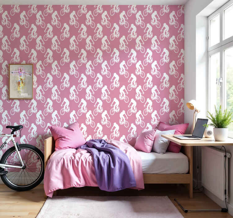 Reference: P11063Transform your space with our stunning White cyclists pattern pink wallpaper, featuring an imaginative design that beautifully intertwines cyclists and cycling motifs in a vibrant pink hue. This unique combination of sport and style brings an energetic flair to any room, perfect for cycling enthusiasts and those who appreciate a playful aesthetic!