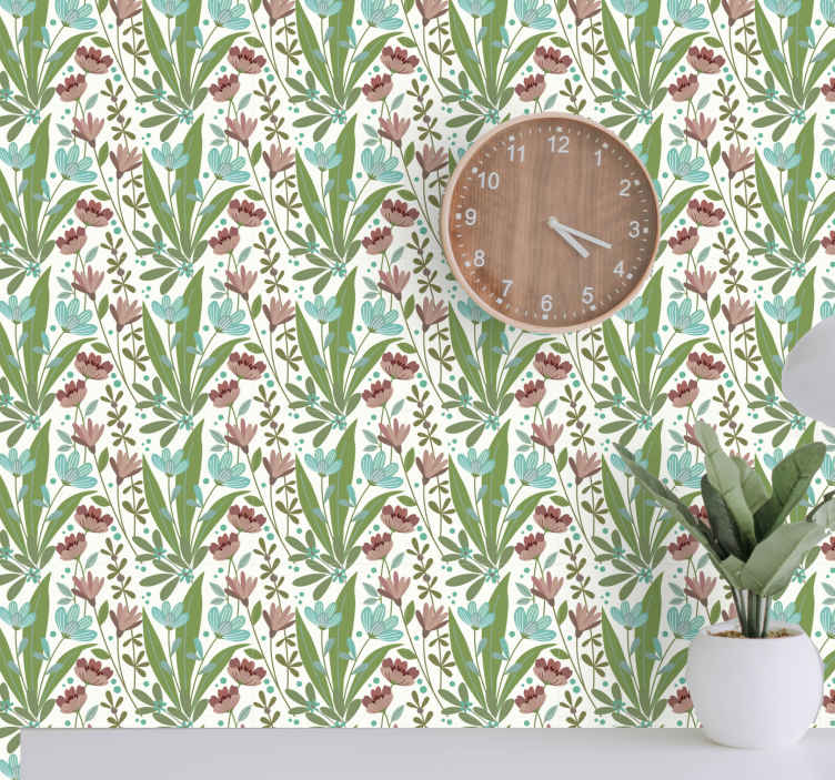 Introducing our stunning Floral Leaf Arrangement flower wallpaper, a perfect blend of vibrant flowers and lush leaves that brings the beauty of nature into your home. This exquisite design features a captivating pattern that acts as an elegant ornament, transforming any space into a serene garden oasis. The soft matt colors enhance its appeal, creating a harmonious atmosphere that is both refreshing and inviting!
