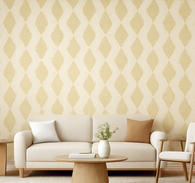 Reference: P13386Transform your space with our Living room wallpaper abstract gold triangle, a stunning design that beautifully marries elegance and modernity. The eye-catching gold triangle patterns set against a matte background create a sophisticated atmosphere, perfect for elevating your living room decor. Crafted from non-woven materials, this wallpaper not only enhances the aesthetic appeal of your home but also offers remarkable durability and ease of maintenance!