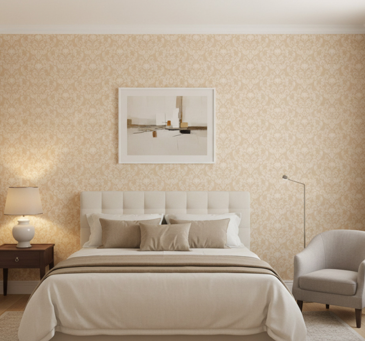Master bedroom wallpaper damask beige pattern