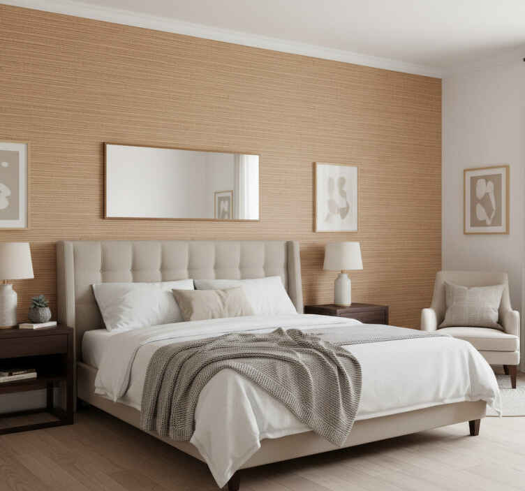 Applying the Master bedroom wallpaper striped light brown planks master bedroom wallpaper is a straightforward process! Use glue to adhere it to your walls, utilizing essential tools like a roller, brush, and cutter for a flawless finish. With a little patience, you will transform your space into a beautiful haven.